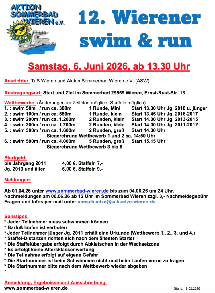 Ausschreibung 12. Wierener swim & run: